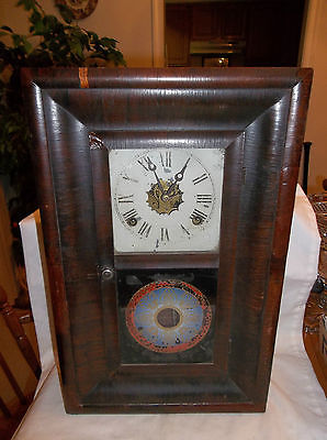 ANTIQUE E N WELCH KEY WIND MANTLE CLOCK 30 HOUR WOOD CASE GLASS DIAL COVER 1870