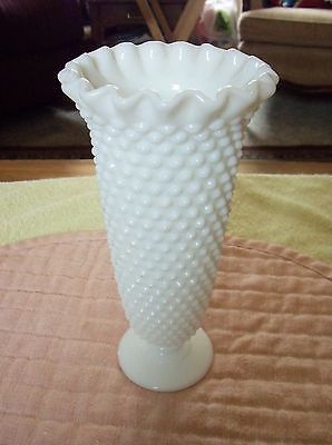 Title (ebay affiliate link): VINTAGE FENTON? WHITE MILK GLASS HOBNAIL TRUMPET VASE W/ RUFFLED RIM