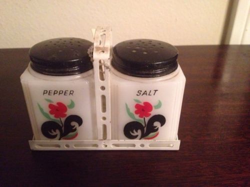 Vintage milk glass salt n pepper shaker With Rack Flower