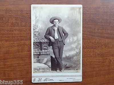 VINTAGE CABINET PHOTO OF MAN WITH WESTERN HAT ~ RUSSELL KANSAS
