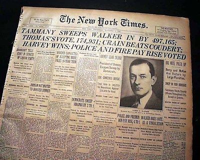 Title (ebay affiliate link): JIMMY WALKER Beau James MAYOR New York City Re-Election Win 1929 NYC Newspaper