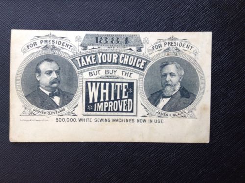 Title (ebay affiliate link): 1884 RARE PRESIDENTIAL AD CARD CLEVELAND v BLAINE for WHITE SEWING MACHINES