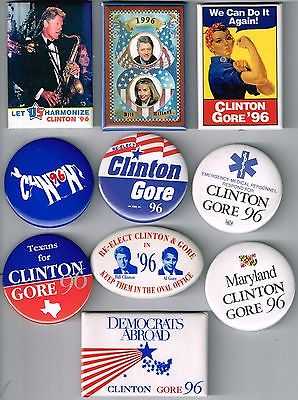 10 Different 1996 BILL CLINTON Campaign Buttons