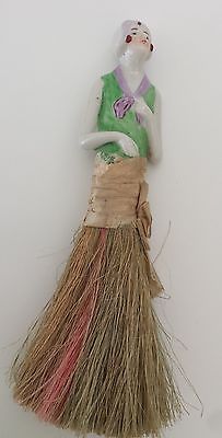 Antique HALF DOLL 1920's Porcelain Table Crumb Brush Sweeper Duster Broom
