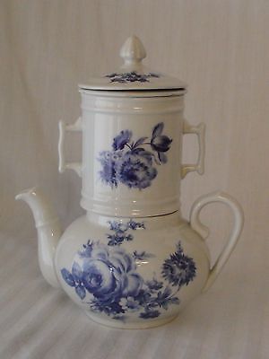 Vintage PILLIVUYT TEAPOT w/ Infuser White& Blue Porcelain France 4 pc
