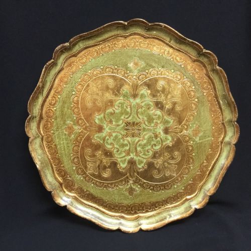 Title (ebay affiliate link): Large Vintage Florentine Italian Tole Wood Tray Green Gold Gilt Italy 15" Round