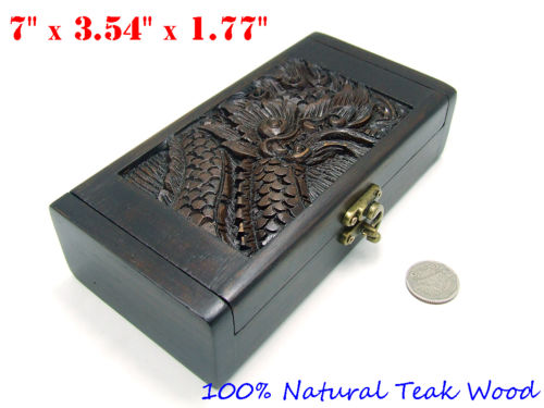 Antique Vintage Dragon Hand Carved Wood Jewelry Box Unique Carving Storage TCB4