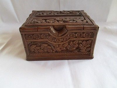 Vintage Wood Hand Carved Cigarette Dispenser Box - POP UP Dispenser