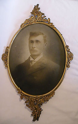 Antique Edwardian Gold Gilt Rococo Convex Ornate Oval Wall Portrait Frame 11"x14