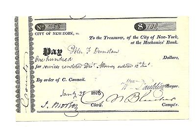 Title (ebay affiliate link): RARE 1828 City of New-York CHECK Signed by NY Mayor dated "Jan. 28, 1828"