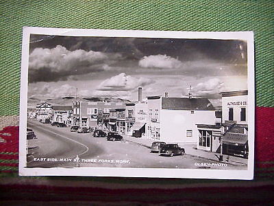 THREE FORKS MONTANA East Side Main St. RPPC Real Photo POSTCARD 1940s