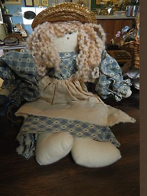Primitive Rag Doll w/ straw hat ~ 13" tall
