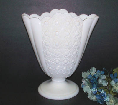 DAISEY & BUTTON MILK GLASS LARGE FAN VASE