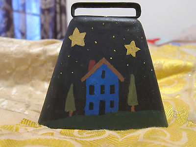 PRIMITIVE ANTIQUE DECORATIVE ARTS HANDPAINTED COW BELL. LOVELY!