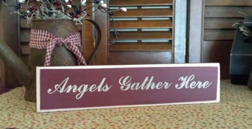 Title (ebay affiliate link): Primitive Country Shelf Sitter Sign......"Angels Gather Here"