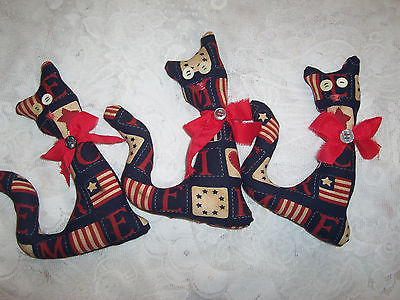 Title (ebay affiliate link): Primitive Americana Dark Blue Fabric Kitty Cat Ornies Bowl Fillers Deco Set of 3