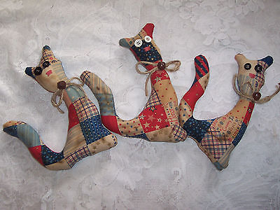 Primitive Americana Patchwork Fabric Kitty Cat Ornies Bowl Fillers Deco Set of 3