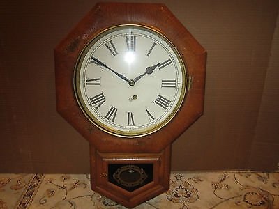 ANTIQUE ANSONIA OCTAGON SCHOOLHOUSE TIME WALL CLOCK MADE IN USA