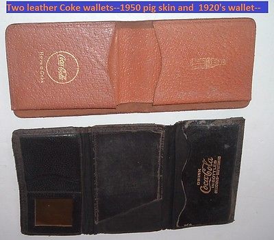 LOT 2 Antique Coca Cola 1920 Coke Wallet & 1950 Pigskin Coke Wallet Free usa PO
