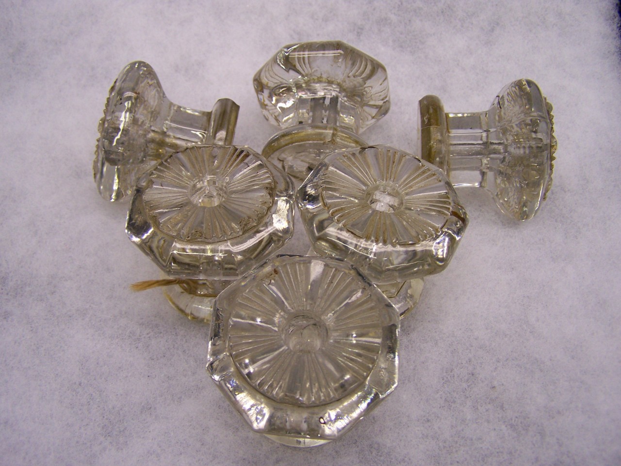 LOT 6 MATCHING ANTIQUE GLASS FURNITURE KNOBS PULLS 2"