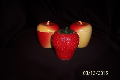 LOT of 3 HAZEL ATLAS Painted Milk Glass JELLY/JAM JARS ~ Apples & Strawberry