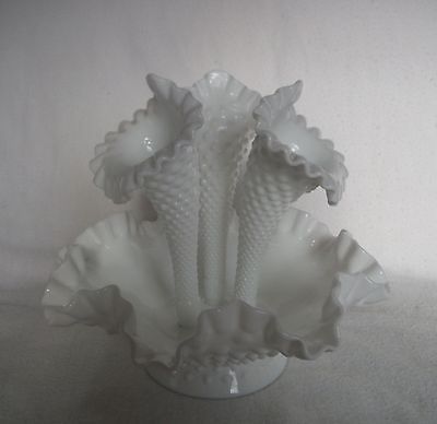 Vintage Fenton White Milk Glass Hobnail Epergne 9" Vase