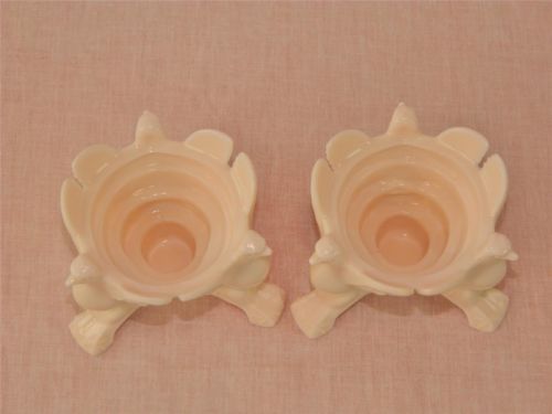 Title (ebay affiliate link): Vintage Pair of Jeanette Shell Pink Milk Glass 3 Footed Eagle Candle Holder