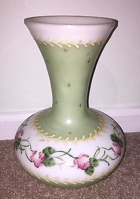 Beautiful Large Vintage Consolidated Hand Painted Milk Glass Vase