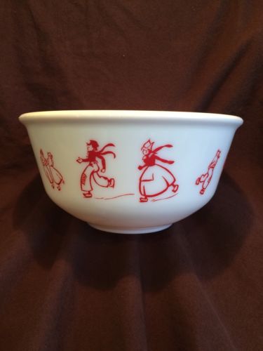 Title (ebay affiliate link): Hazel-Atlas Skating Dutch Red White Mixing Bowl Skaters Platonite Milk Glass