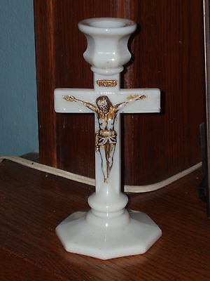 Title (ebay affiliate link): Vintage Milk Glass Catholic Religious Crucifix Candle Holder