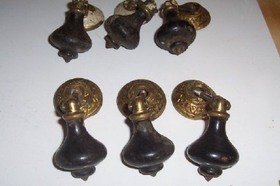 Title (ebay affiliate link): LOT 6 ANTIQUE WOOD BRASS PULLS FOR DRAWERS FURNITURE