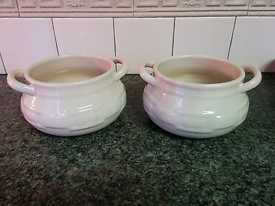 Longaberger Pottery Set of 2 Soup Tureen Bowls Ivory Woven Traditions