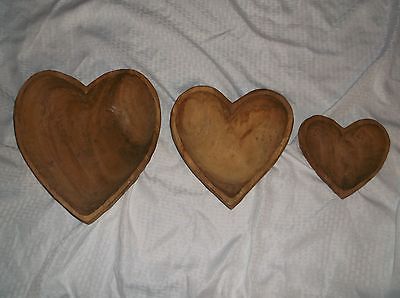Vintage Set Of 3 Beautiful Hand Carved Wooden Heart Shaped Bowls.