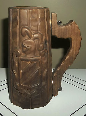 Tall Vintage Carved Wood Knight Shield Medieval Stein Wooden Tankard