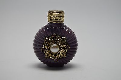 Vintage Czech beautiful violet glass faux pearl mini perfume bottle glass dauber