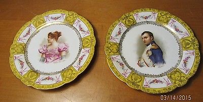 PAIR Antique FRENCH Porcelain NAPOLEON & JOSEPHINE Cabinet PLATE N Crown MARK