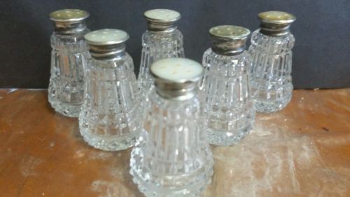 Title (ebay affiliate link): Six vintage mother of pearl,sterling silver rimmed glass salt and peppers