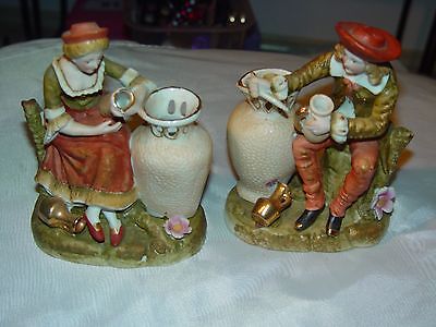 Pair of antique? Bisque figurines lady & Man Dutch? Victorian? Signed