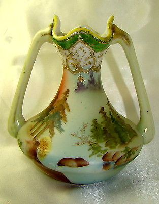 ANTIQUE IE&C CO HAND PAINTED TWO HANDLED VASE MORIAGE NIPPON JAPAN