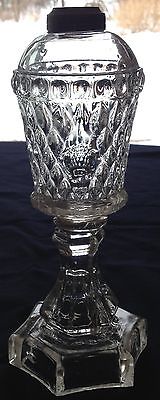 19th c Antique Whale Oil Lamp w Brass Collar Pressed Glass