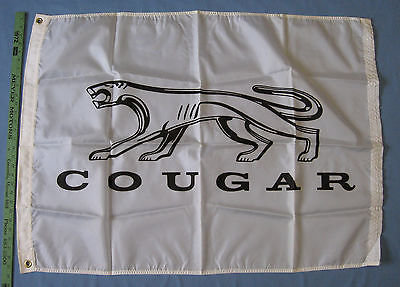 Cougar Cat & Lettering Nylon Flag Banner White and Black NOS