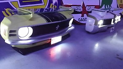 FORD MUSTANG Yellow 3-D WALL GLASS SHELF Working Headlights Shelby Garage Sign