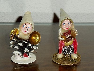 2 Vintage Christmas Pine Cone Spun Cotton Chenille ELVES Japan 3"