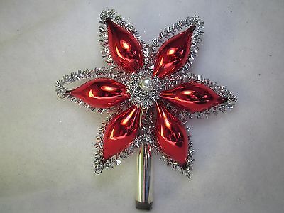 Title (ebay affiliate link): GORGEOUS RED Blown Mercury Glass STAR FLOWER Tinsel Wrap TREE TOPPER Vintage