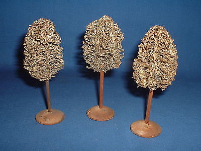 Vintage German Putz Village Loofah Sponge Trees with Wood Bases (3)