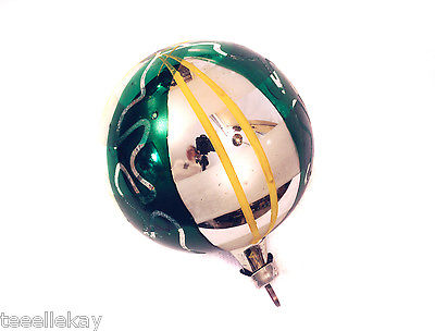 Scarce "USSR OCCUPIED GERMANY" VTG Plaid Glass Feather Tree Xmas Ornament 1.75"