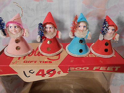 Antique Vtg Christmas 1950's Holiday Decorations Elf Group of Four