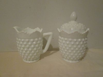 Title (ebay affiliate link): Vintage FENTON Hobnail Milk Glass Creamer & Lidded Sugar Bowl