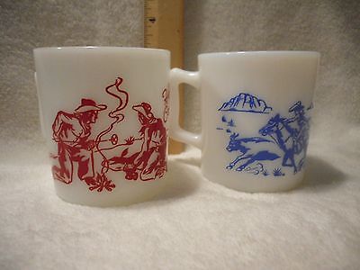 Title (ebay affiliate link): Lot of 2 - Vintage Hopalong Cassidy, Milk Glass Mugs, Blue & Red
