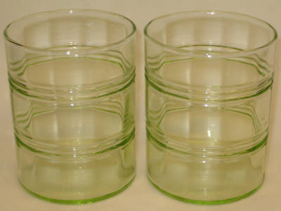 Title (ebay affiliate link): PAIR OF DEPRESSION GREEN ART GLASS TUMBLERS CUP GLASSES